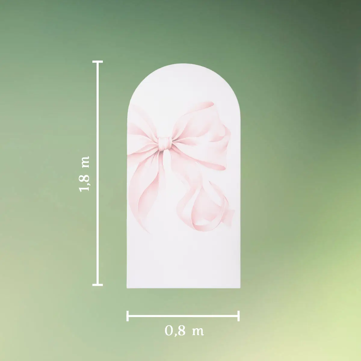 Betræk til buet backdrop stativ | Hvid med lyserød sløjfe motiv | L | 1,8 x 0,8 m