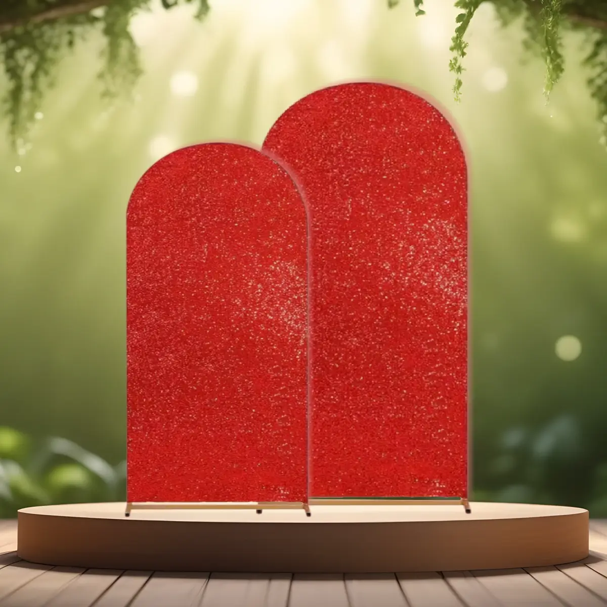 Betræk til buet backdrop stativ | Rød med pailletter | Tosidet backdrop overtræk | Flere str.