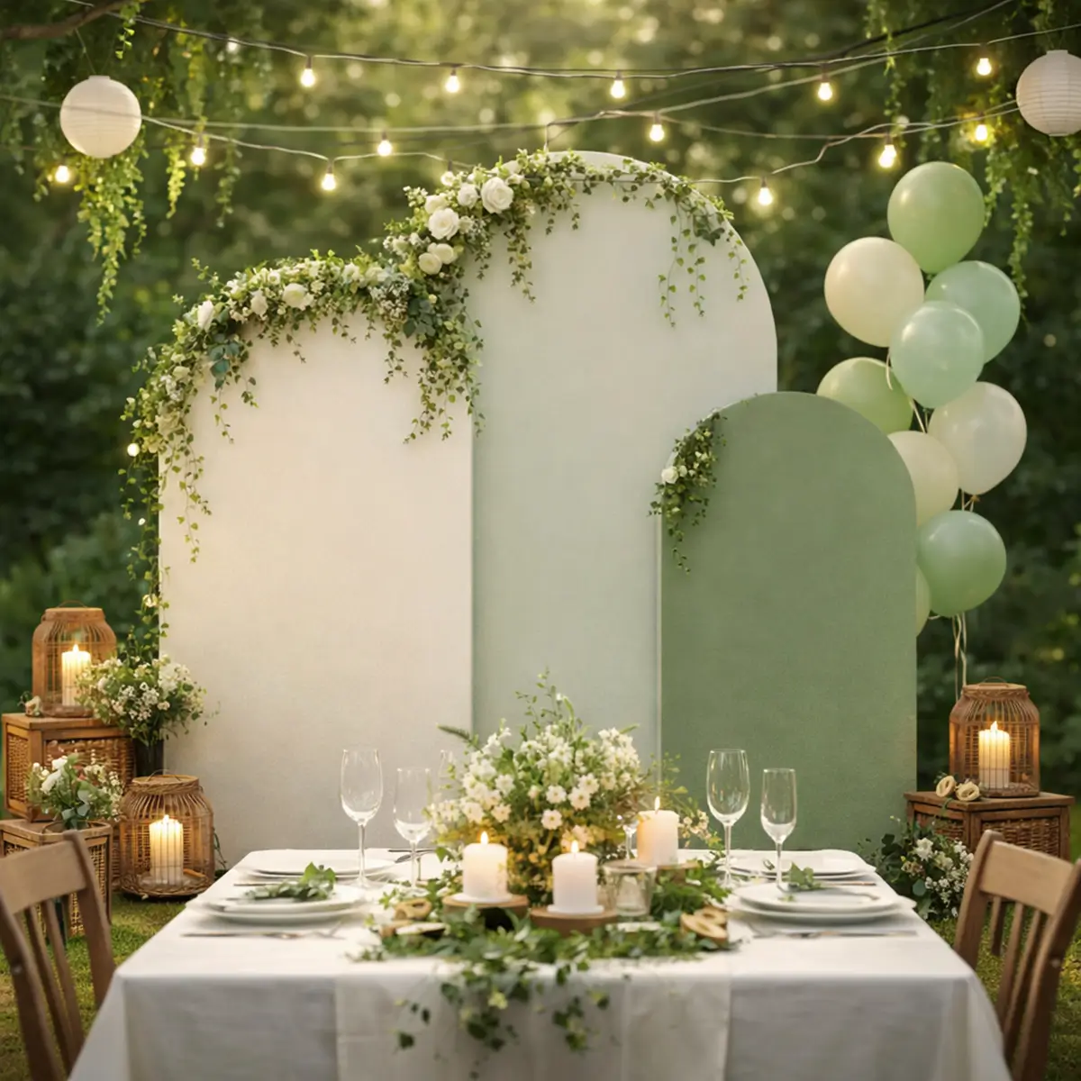 - Backdrop overtrækket passer til bueformede vielsesbuer.