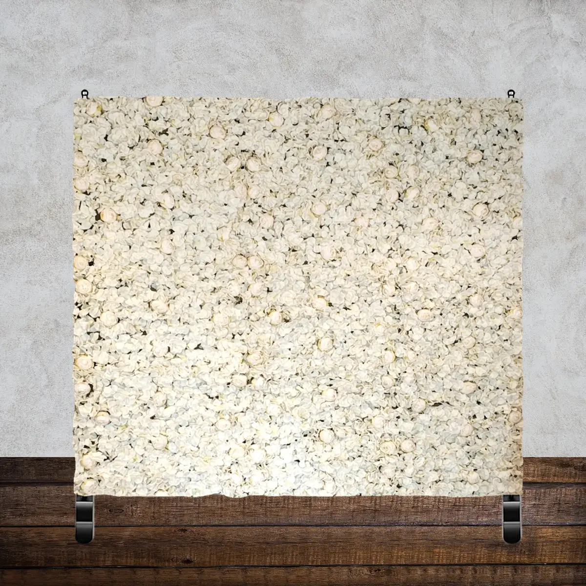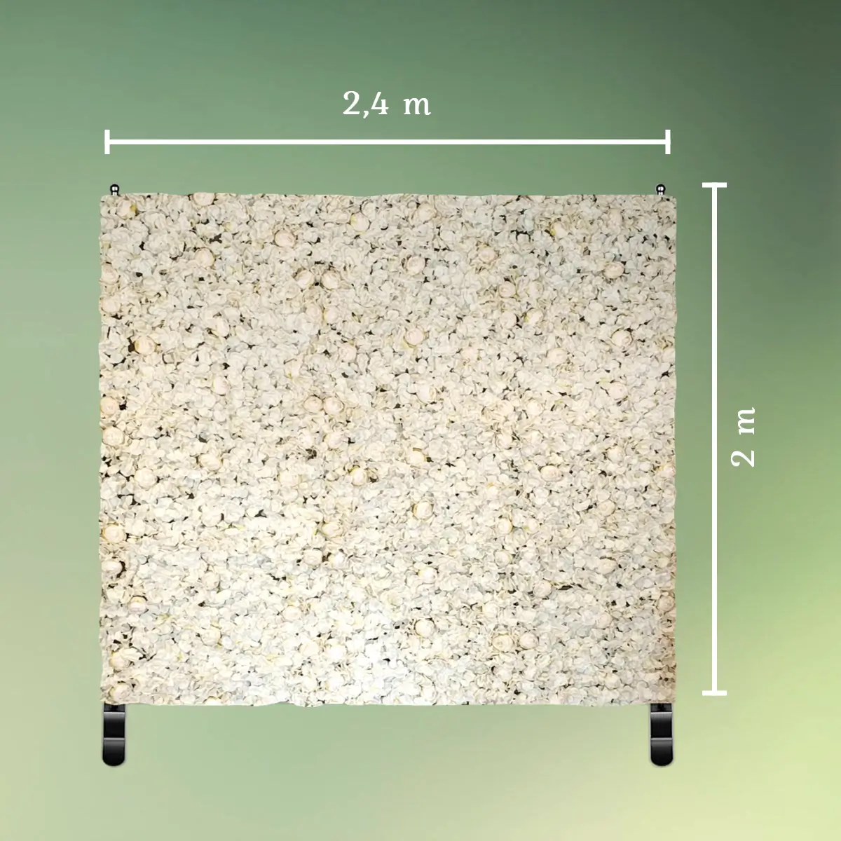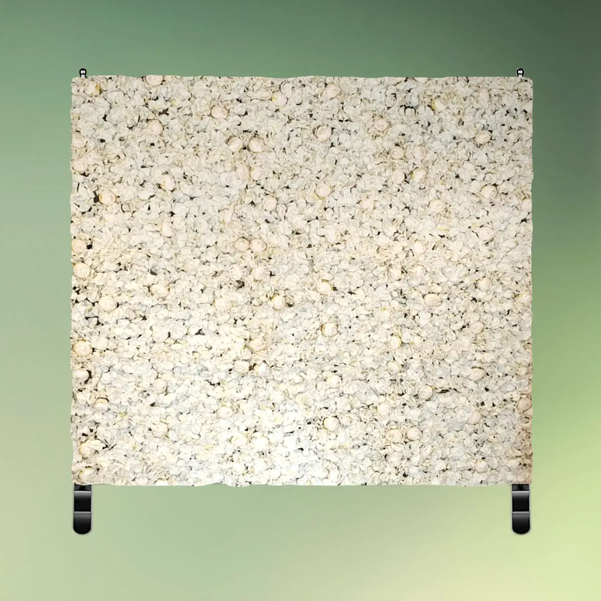 - Lej en 2 x 2,4 m champagne og hvid blomstervæg på stativ til din fest.