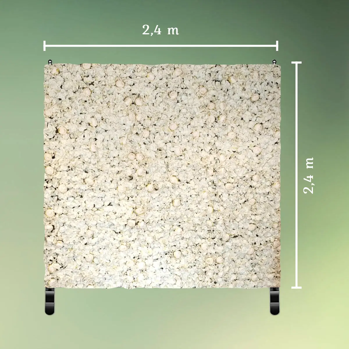 Champagne og hvid blomstervæg på stativ | 2,4 x 2,4 m. | Blomster panel backdrop