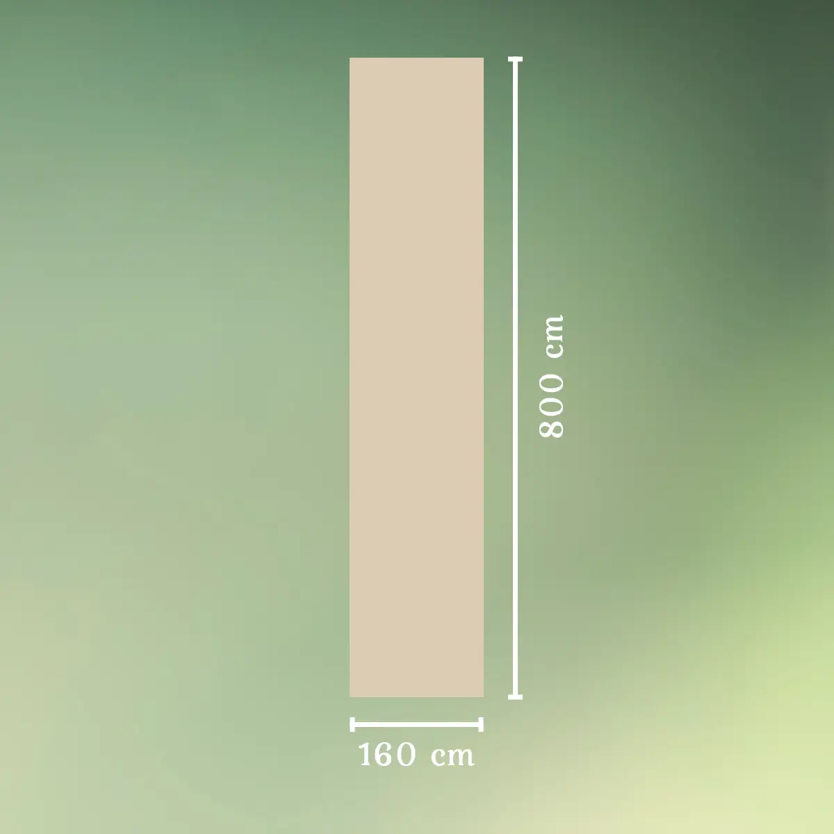 - Stoffet måler 160 x 800 cm.