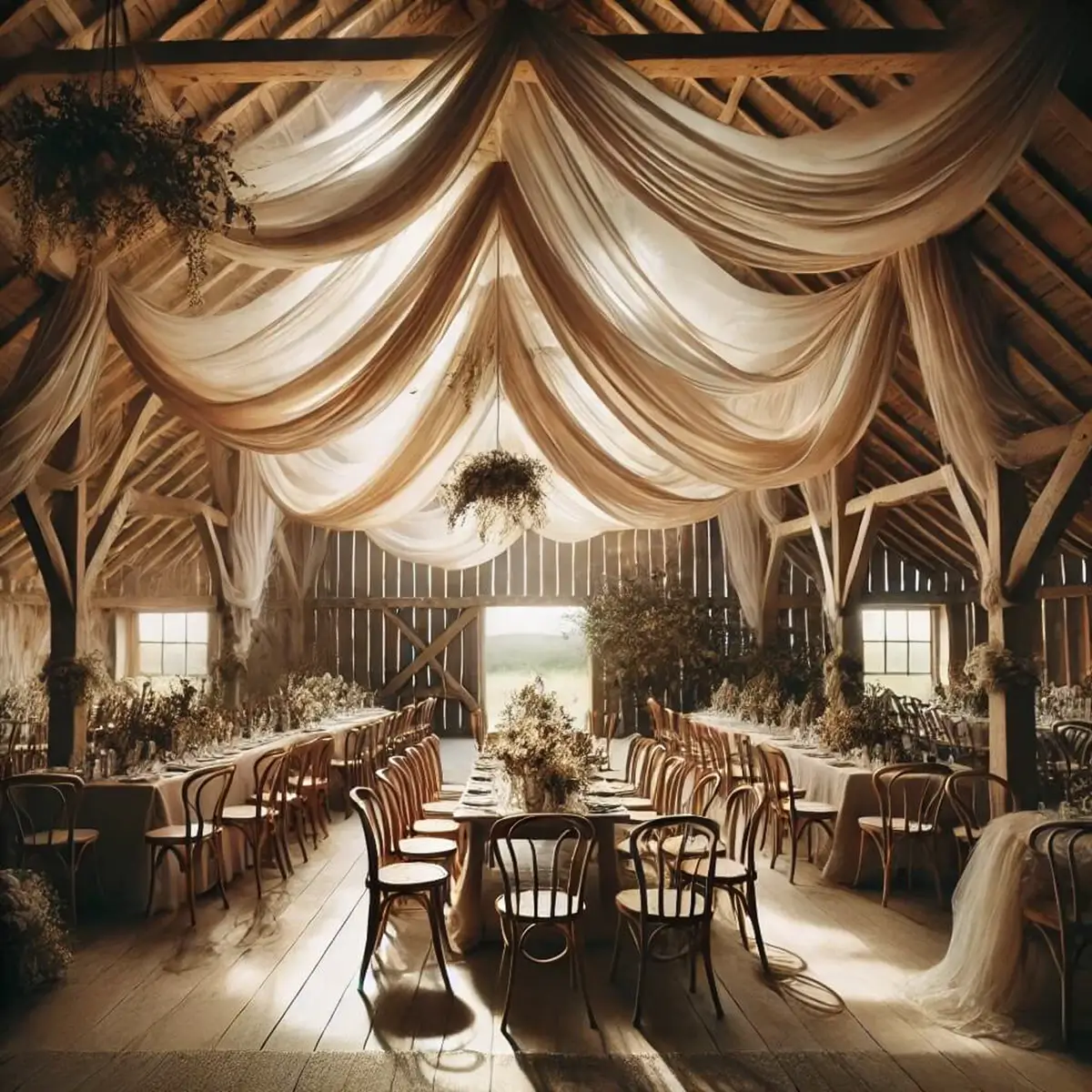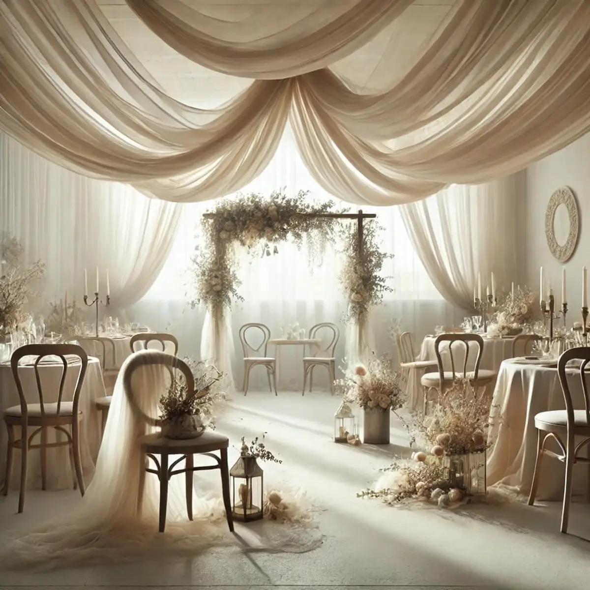 - Stoffet er ideelt som backdrop, til vielsesbuen, ophæng i loft mv.