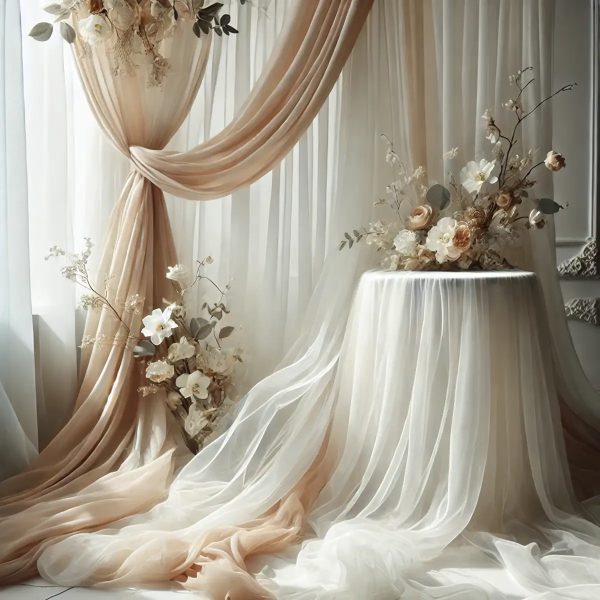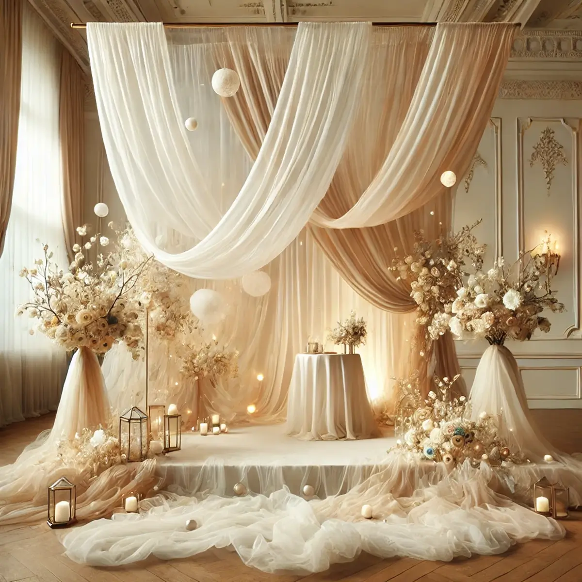 - Stoffet er ideelt som backdrop, til vielsesbuen, ophæng i loft mv.