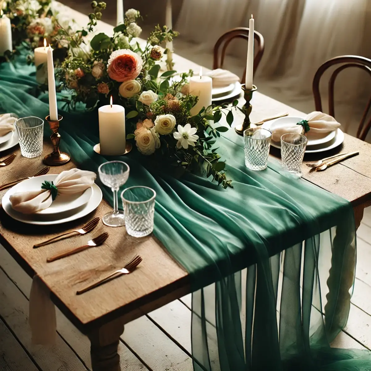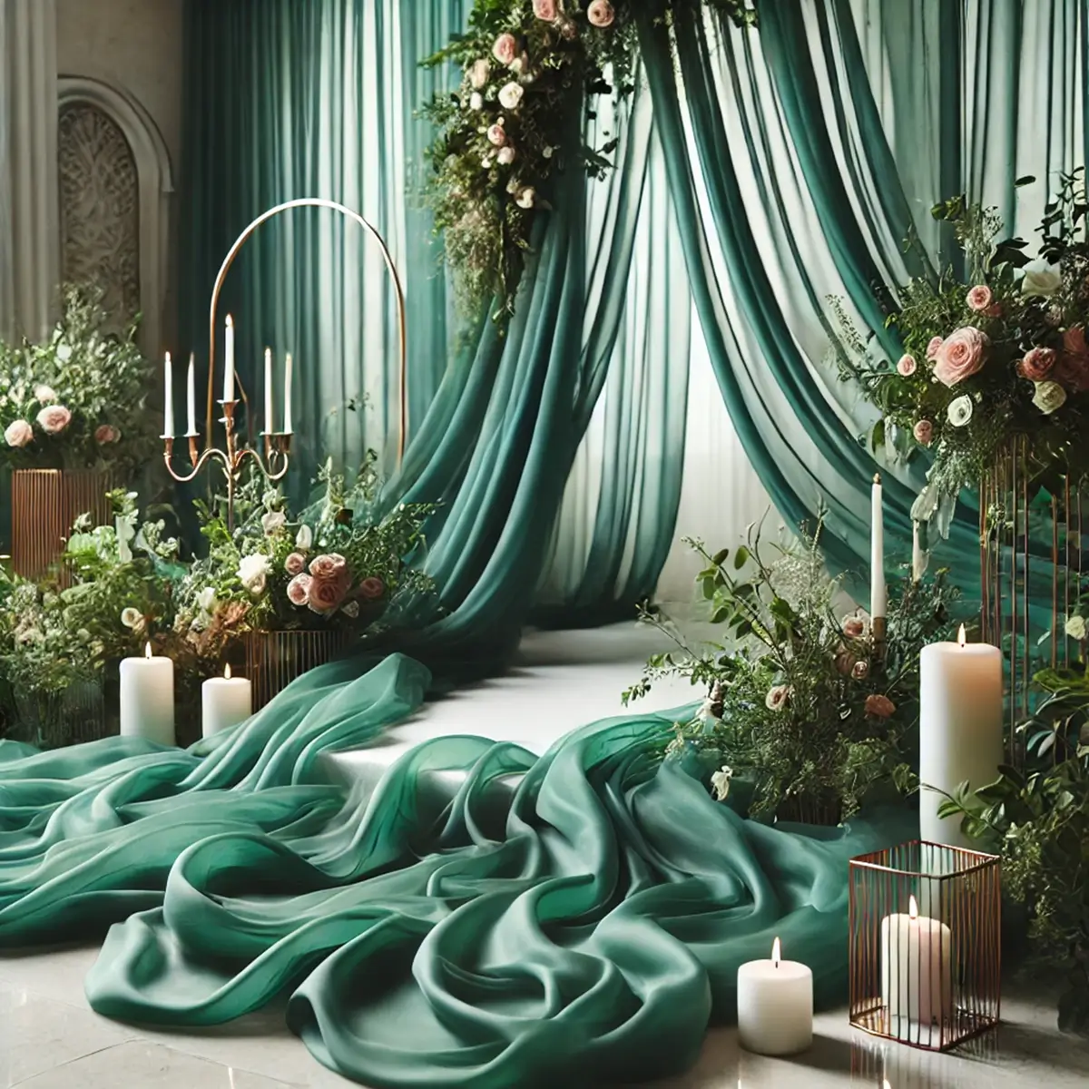 Chiffon stof | Smaragdgrøn | 75 x 600 cm | Stof til vielsesbue og dekoration