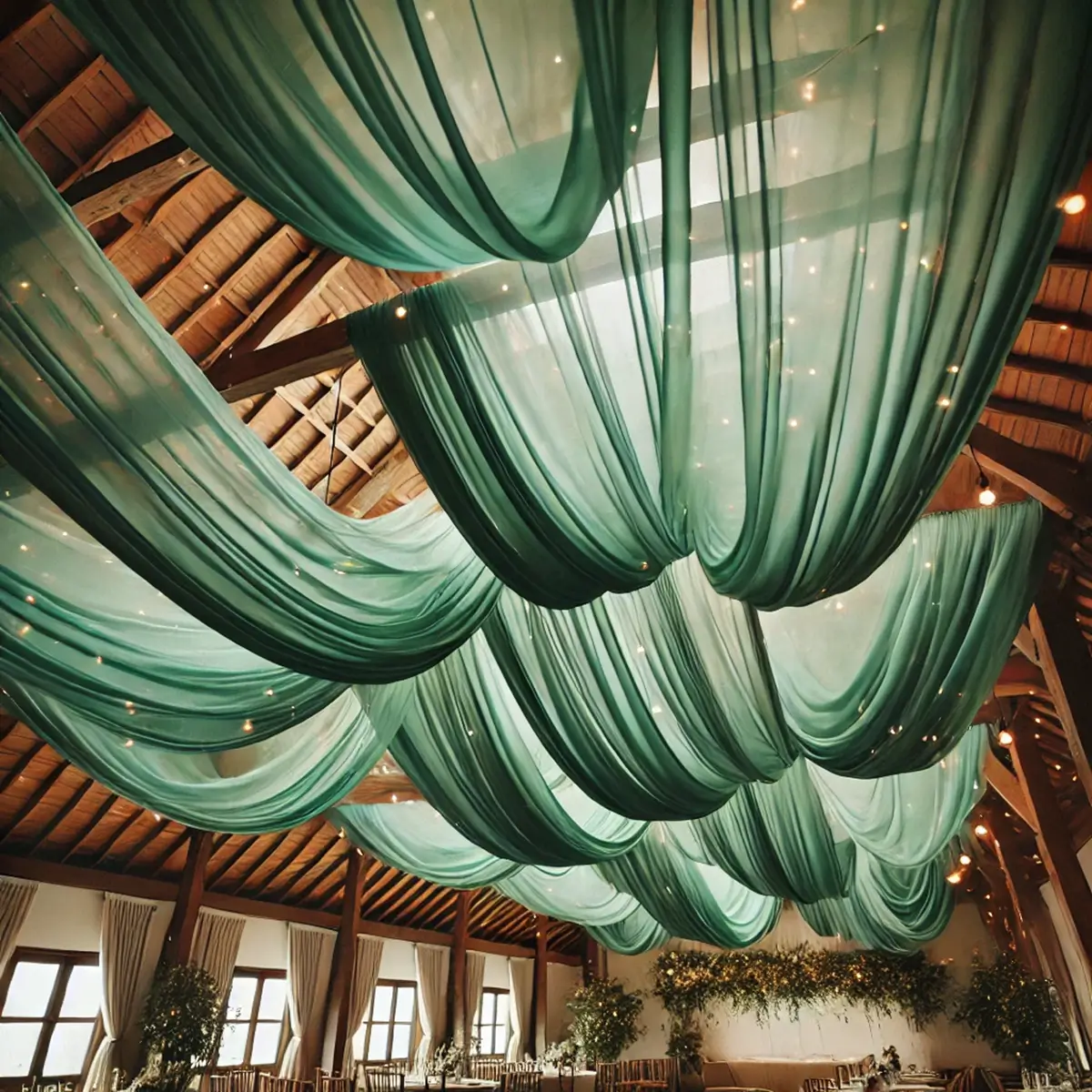 - Stoffet er ideelt som backdrop, til vielsesbuen, ophæng i loft mv.