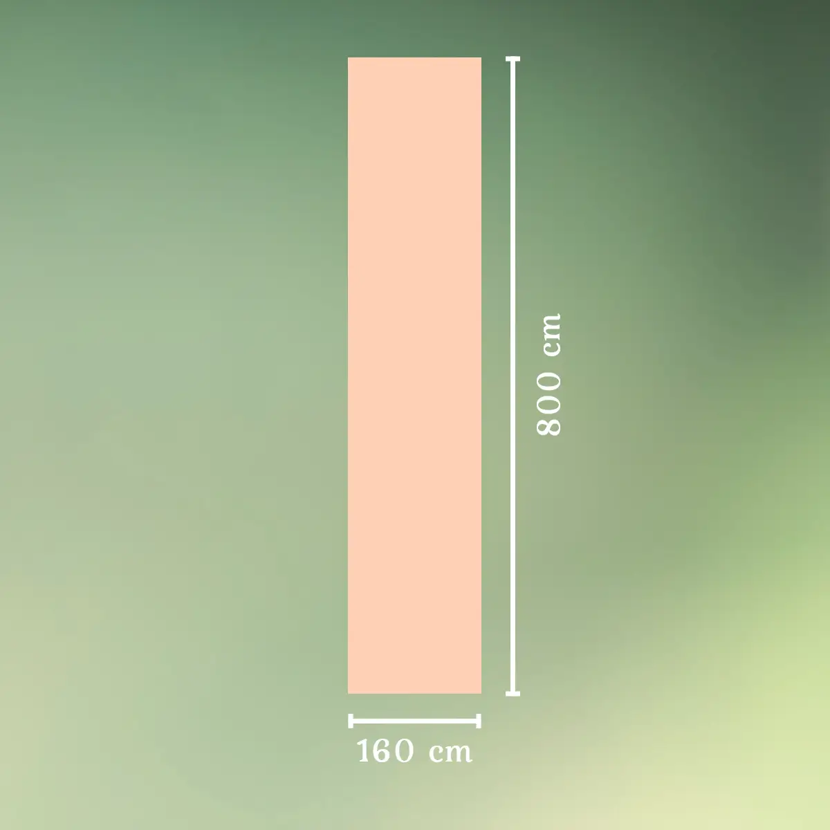 - Stoffet måler 160 x 800 cm.