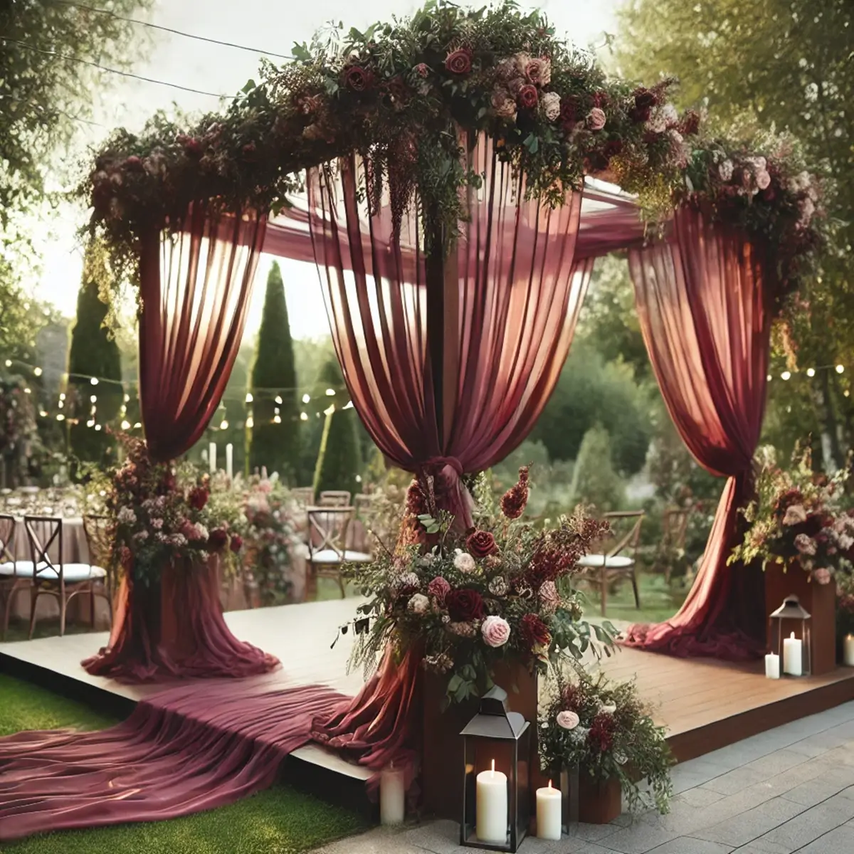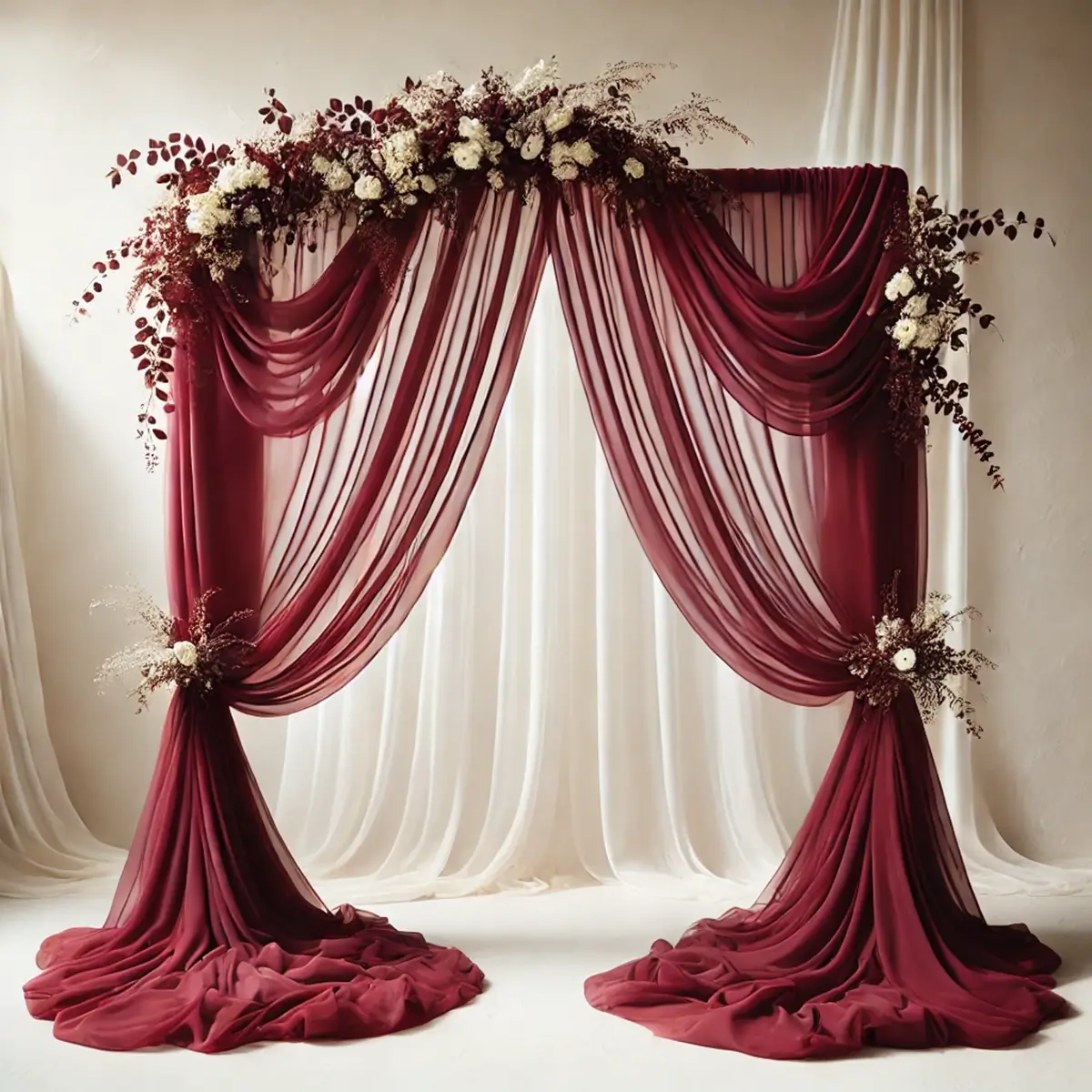 Chiffon stof | Vinrød | 78 x 800 cm | Stof til vielsesbue og dekoration