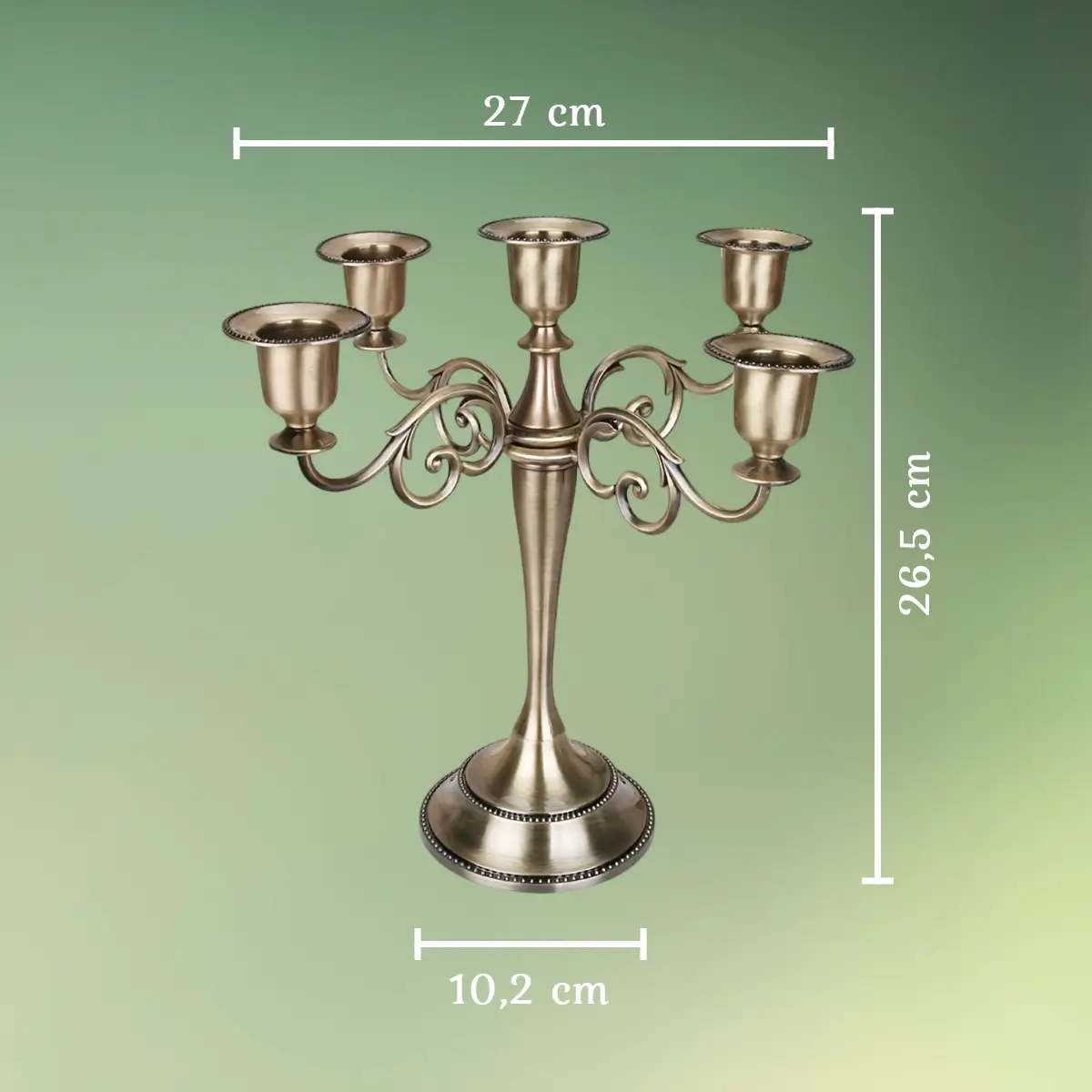 - Dæk dit festbord med denne smukke antikke messingfarvede kandelaber.