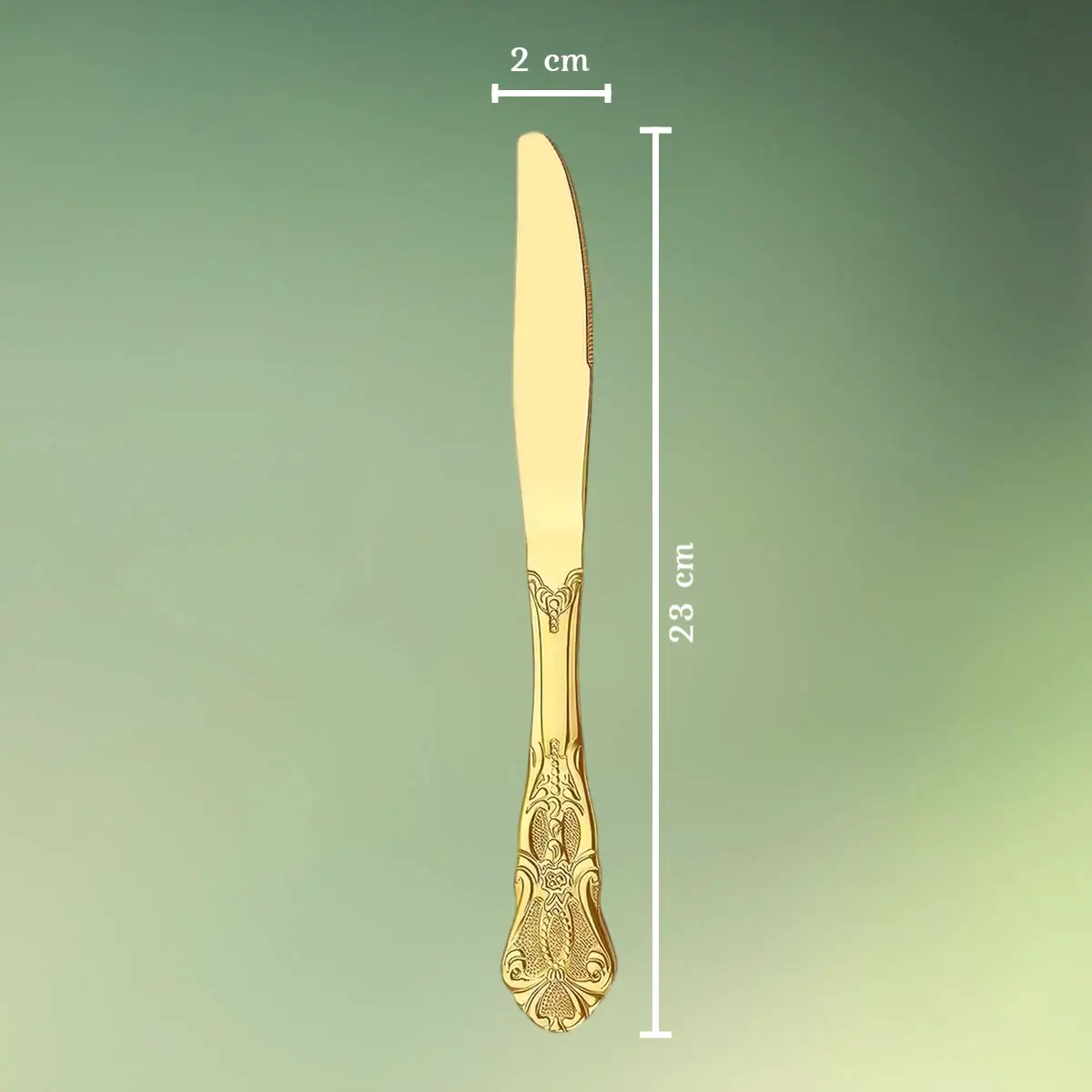 - Guldkniven måler 23 x 2 cm.