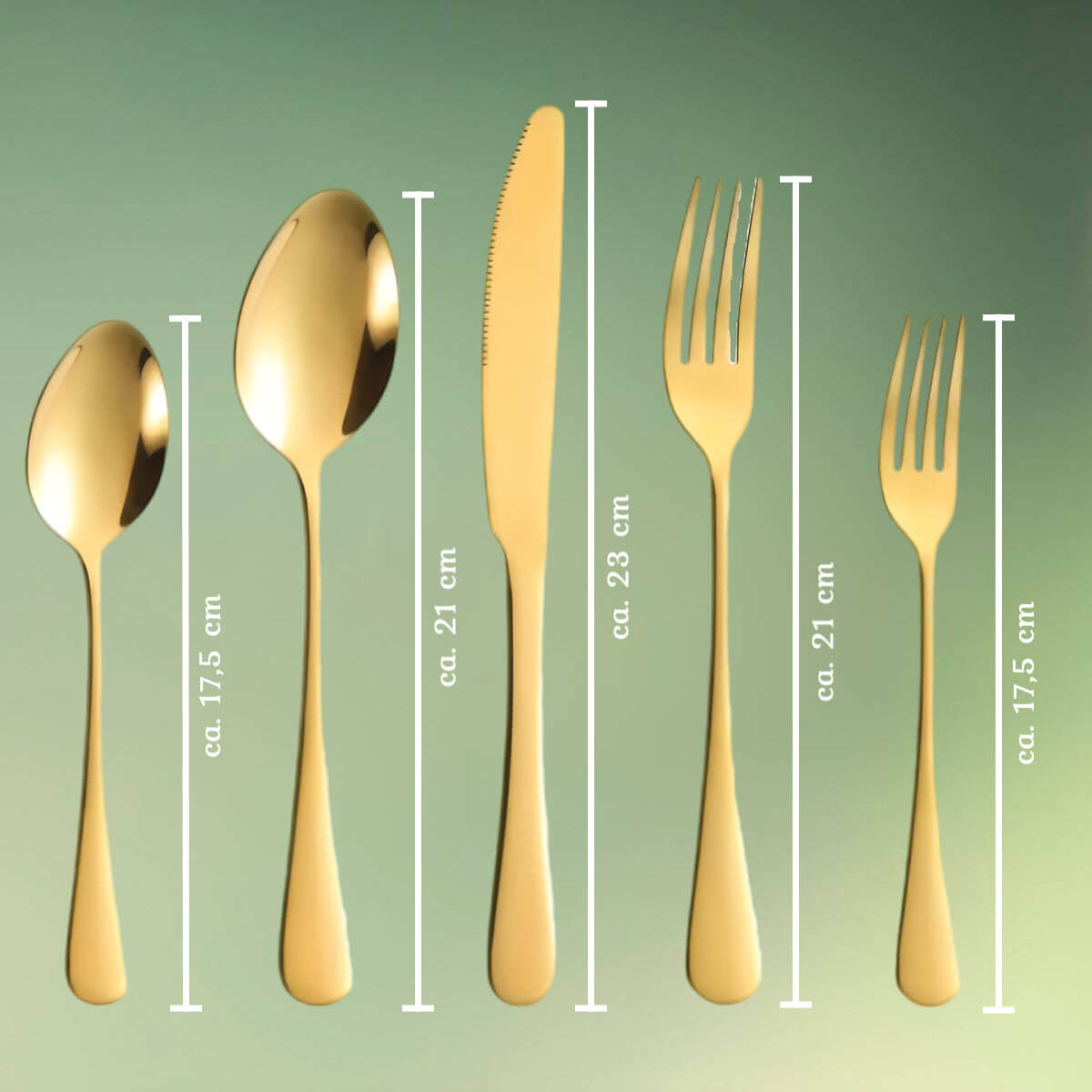 - Dæk dit festbord med dette smukke guld bestiksæt.