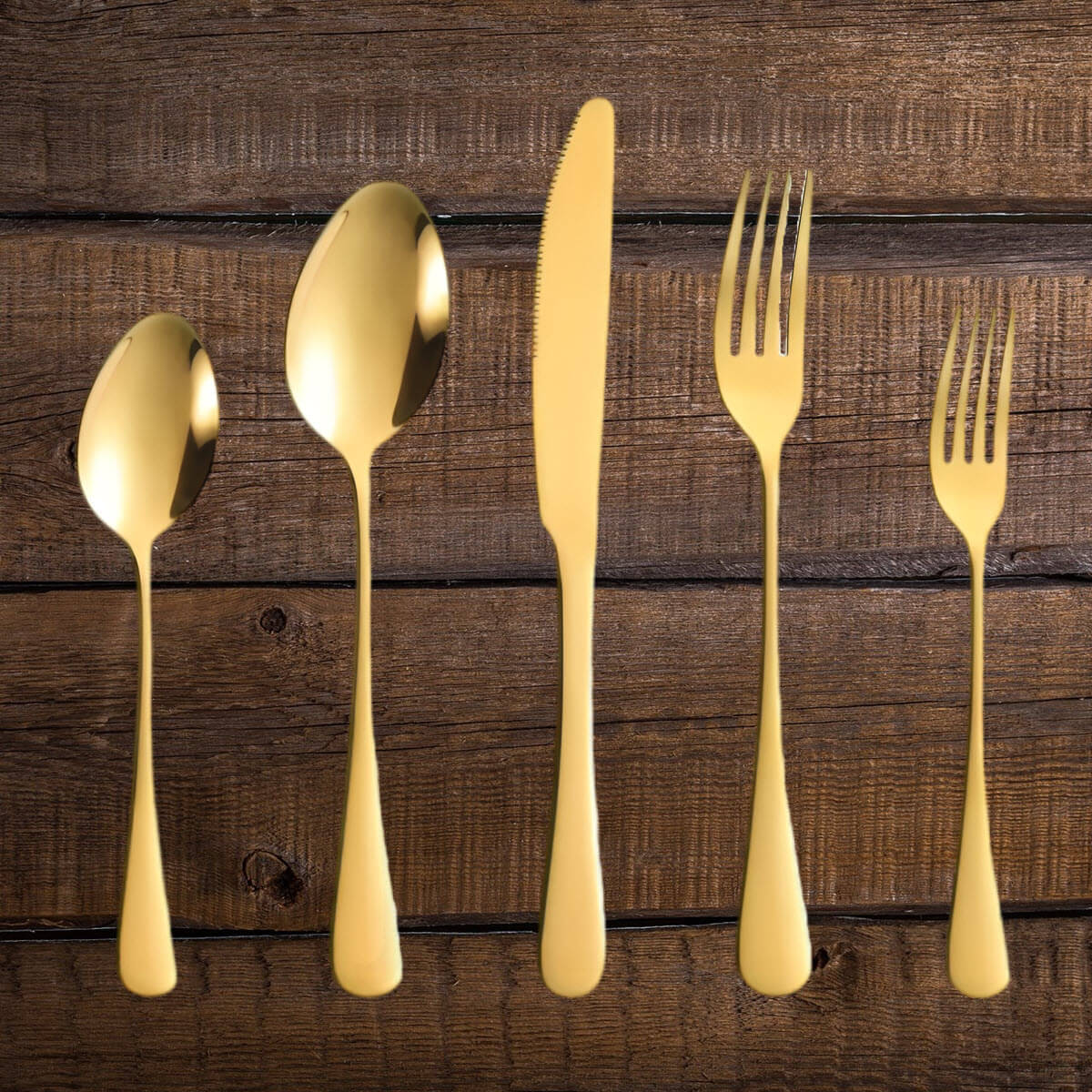 Guldbestik | Rustfri stål | Glat & blank guld bestiksæt | Fem dele