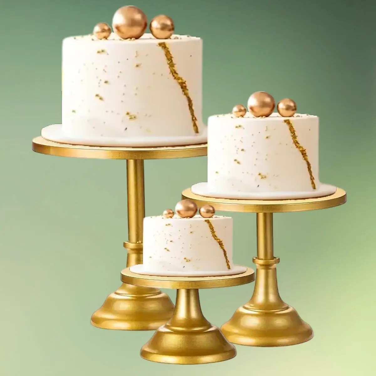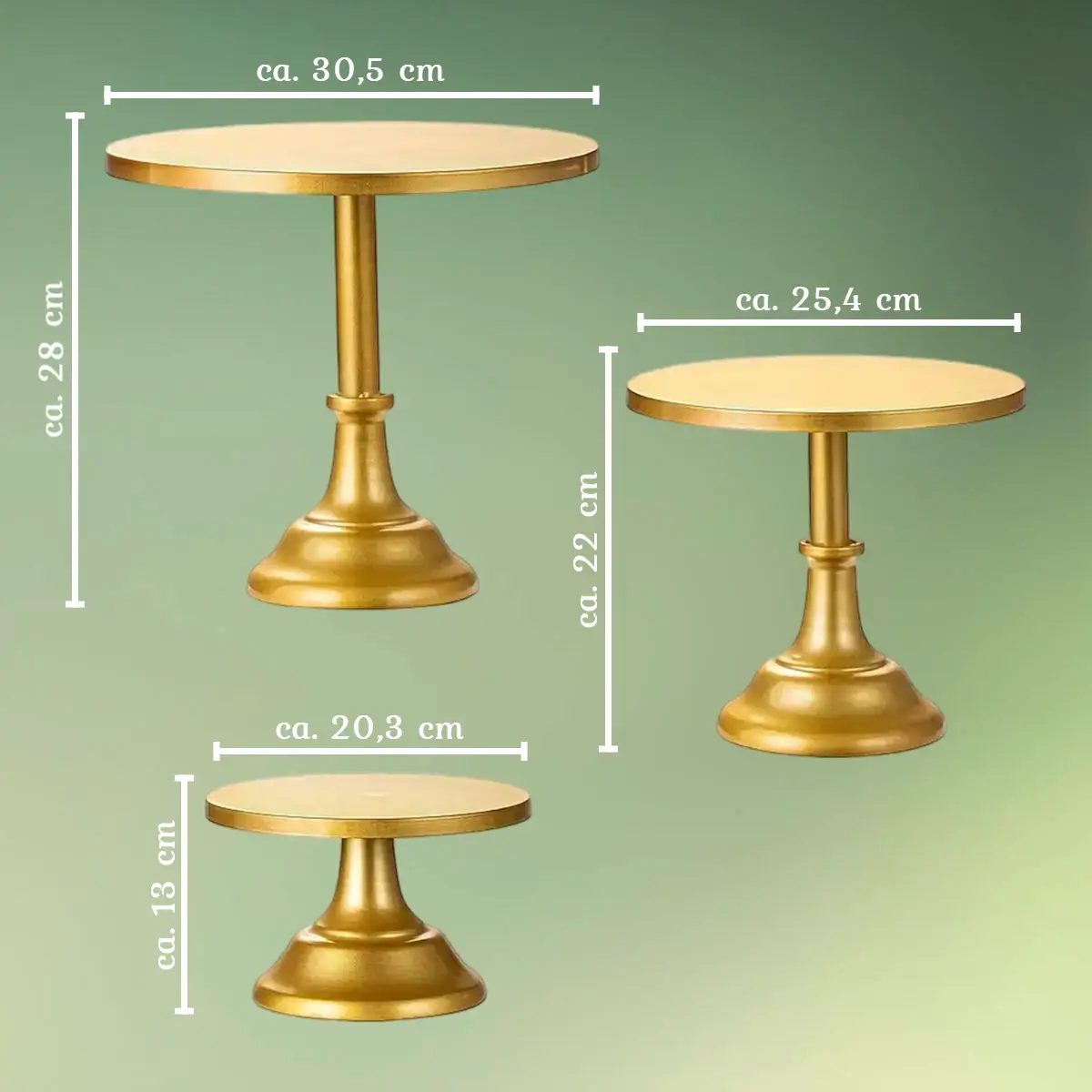 Kageopsatser | Guld | Sæt med 3 kagefade | Guldfarvet fod til pynt og lys