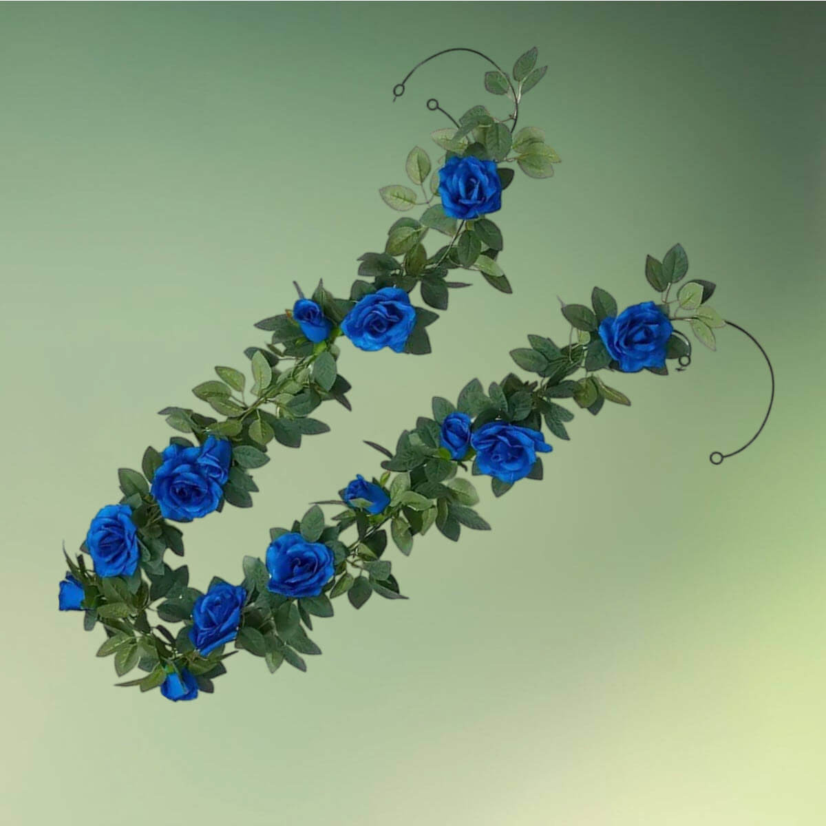 - Lej en kunstig blomsterranke med kongeblå roser.