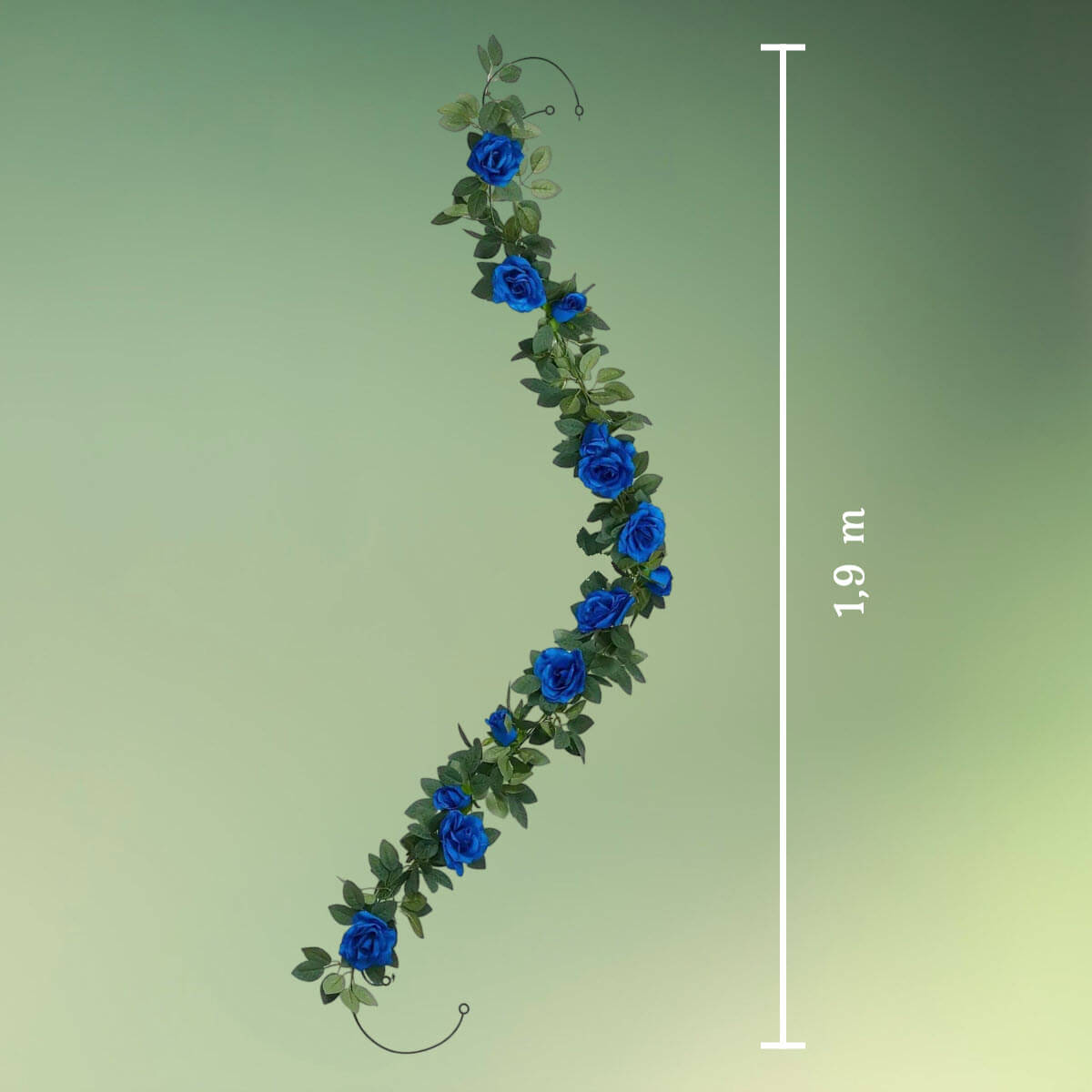Kunstig blomsterranke med kongeblå roser | Rosenranke | 1,9 m