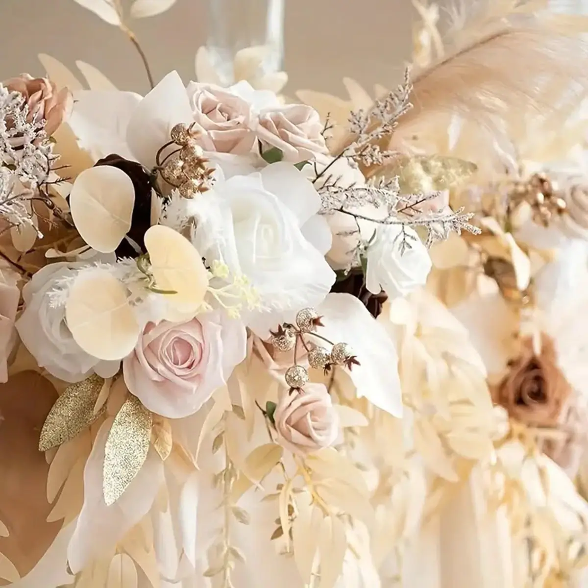 - Lej en smuk kunstig blomsterranke med pil og roser i creme og natur.