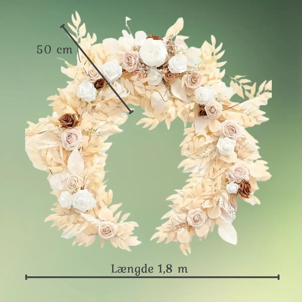 Kunstig blomsterranke med pil og roser | Creme og natur | 0,5×1,8 m