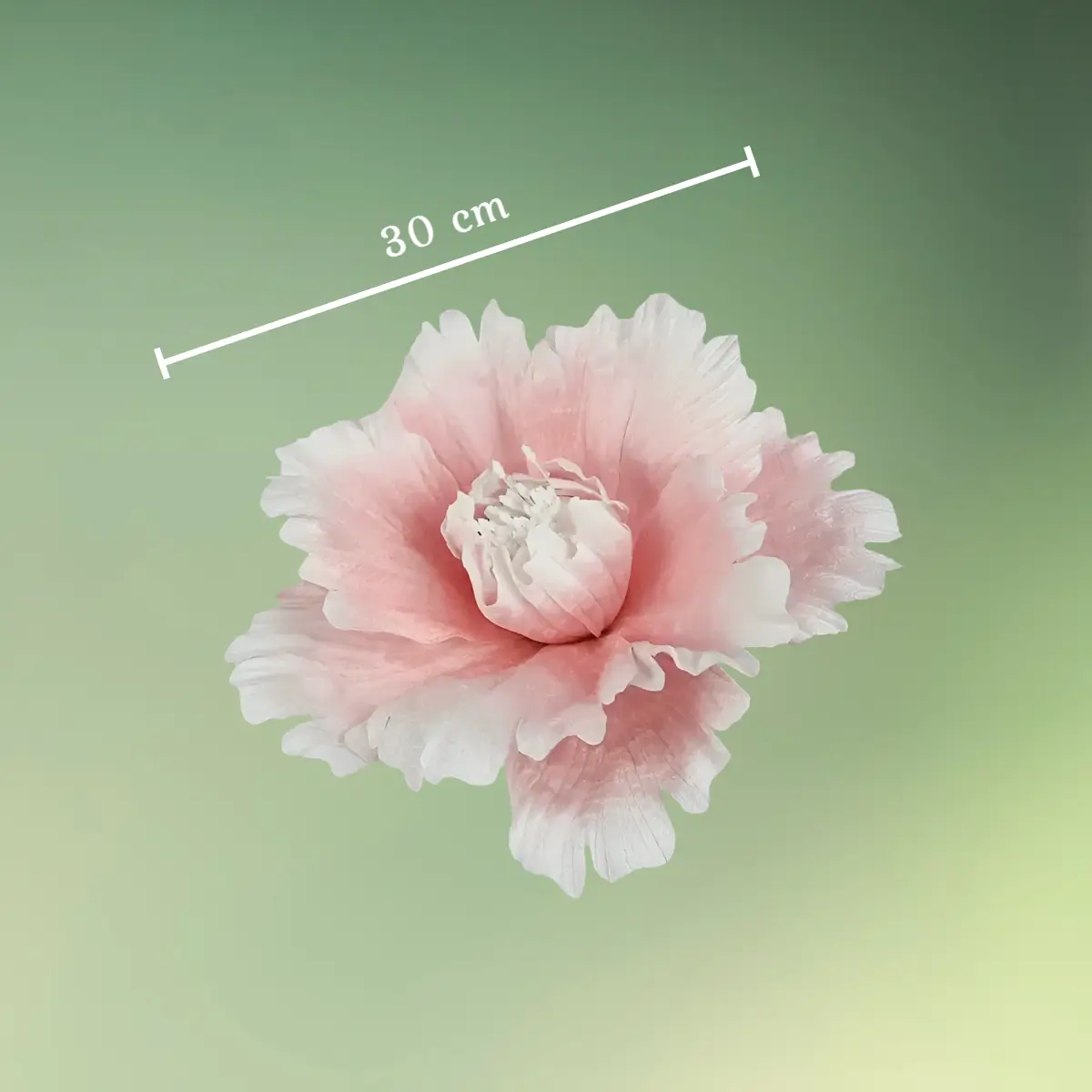 Kunstig pæon blomst med fransede kronblade | Stor blomst | 30 cm | Lyserød-hvid