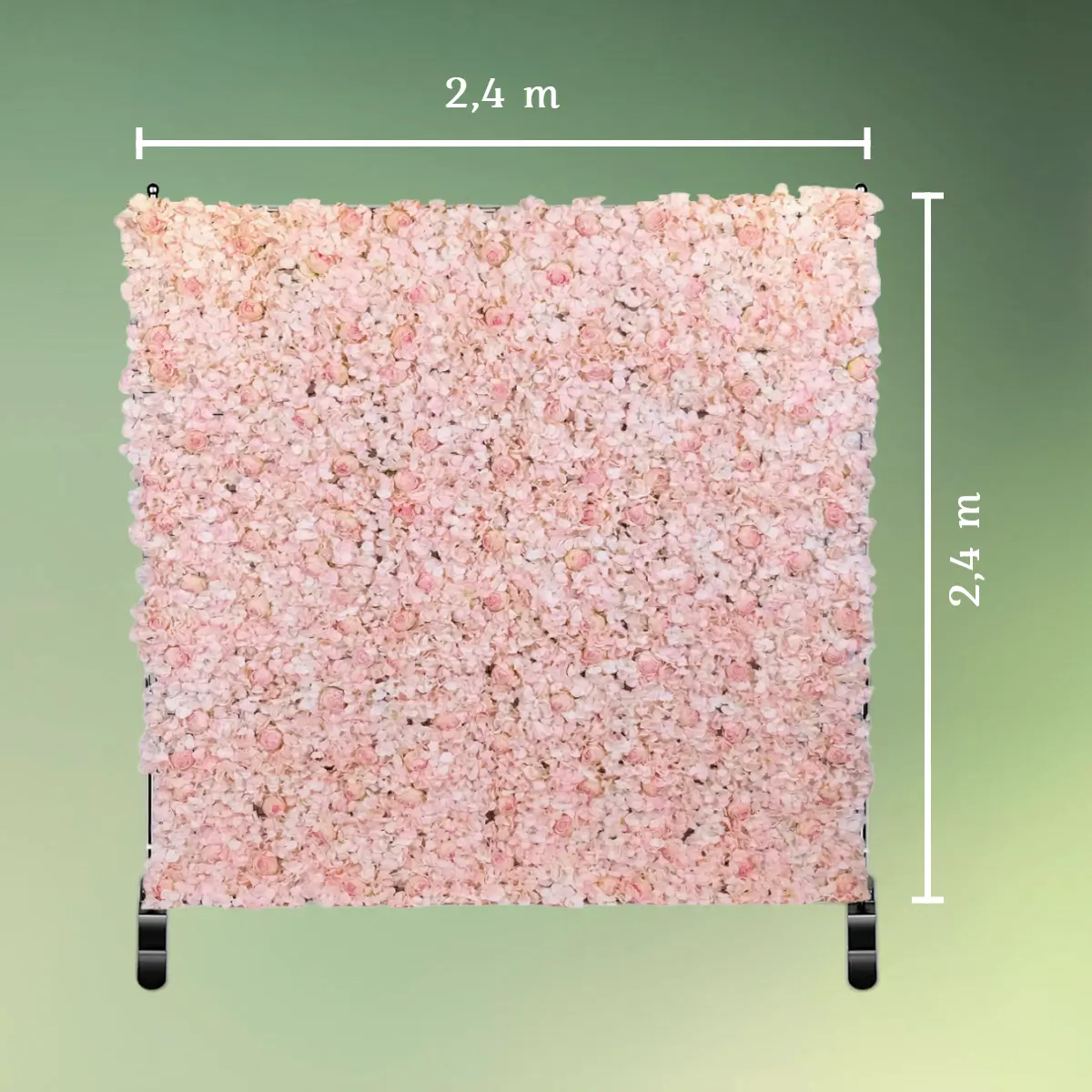 Lyserød og hvid blomstervæg på stativ | 2,4 x 2,4 m. | Blomster panel backdrop