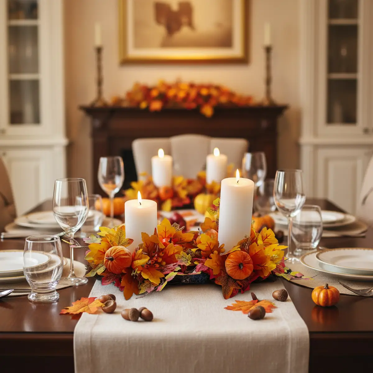 Lyskrans med efterårsblade og græskar | Efterårs krans til bloklys