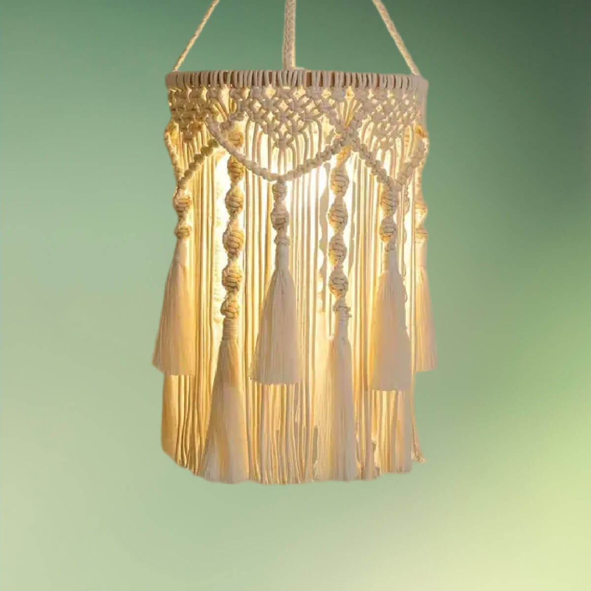 Macramé loftlampe | Håndvævet lampe | Boho hængelampe