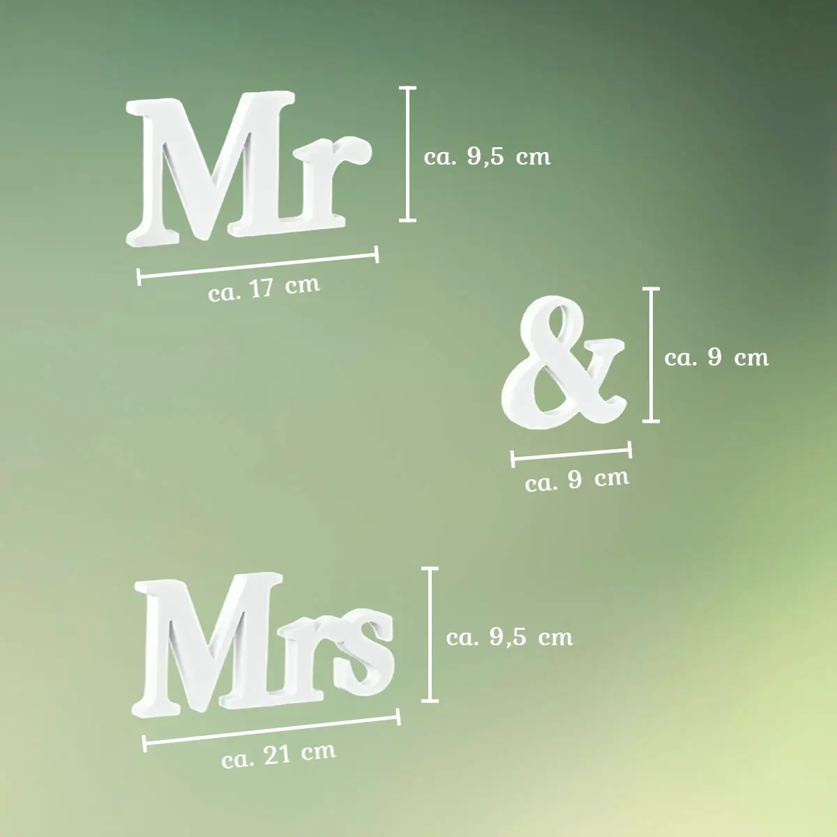 - Mr and Mrs skiltene består af 3 hvide skilte udført i malet MDF.