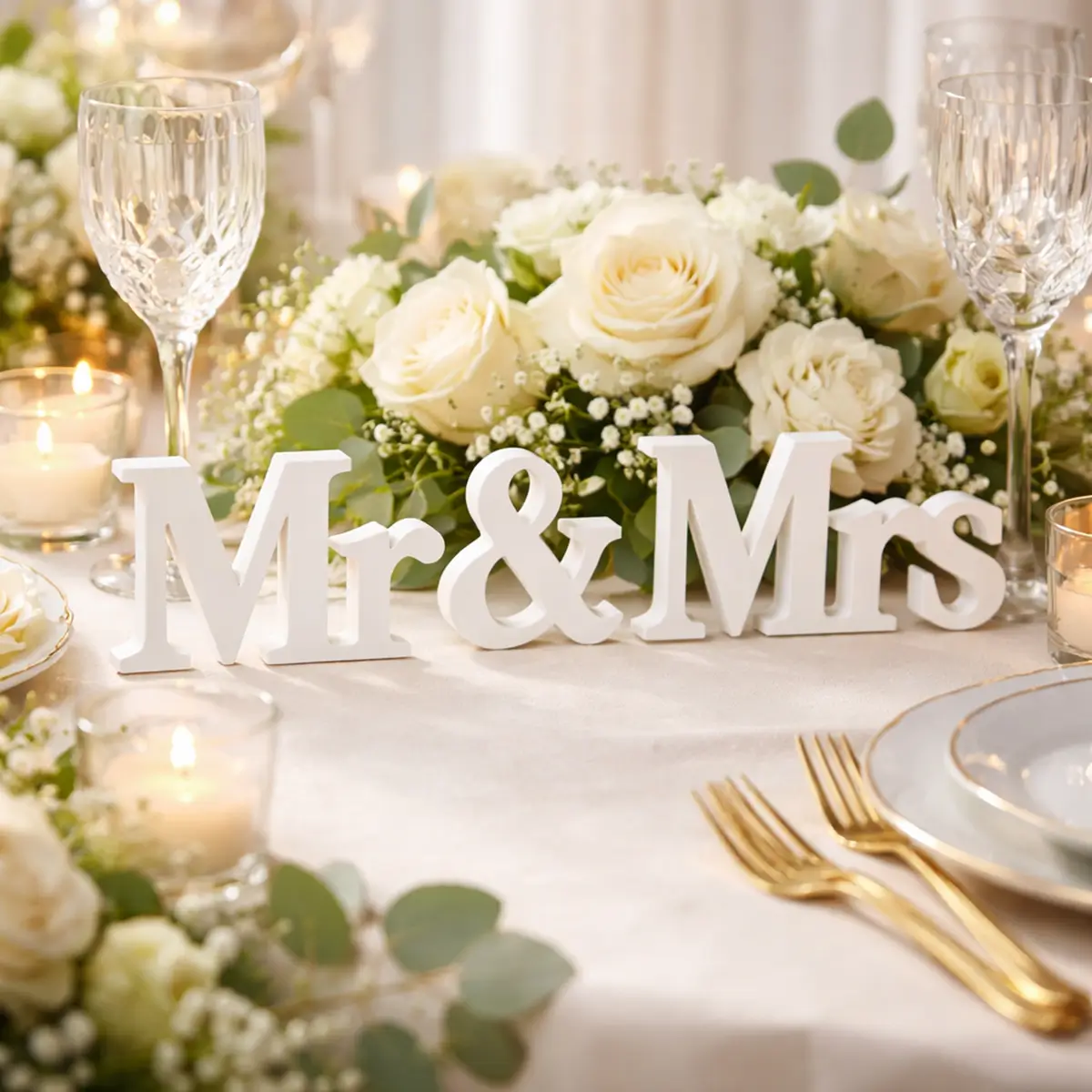 - Lej et hvidt Mr & Mrs træskilt til dit bryllup.