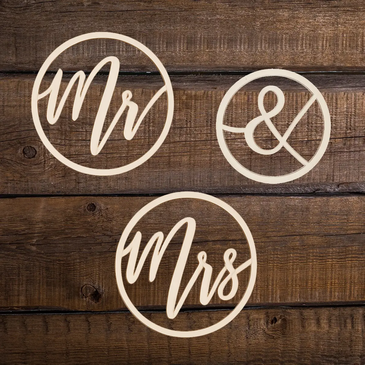 Mr & Mrs træskilte | Mr and Mrs | Runde træringe til ophæng