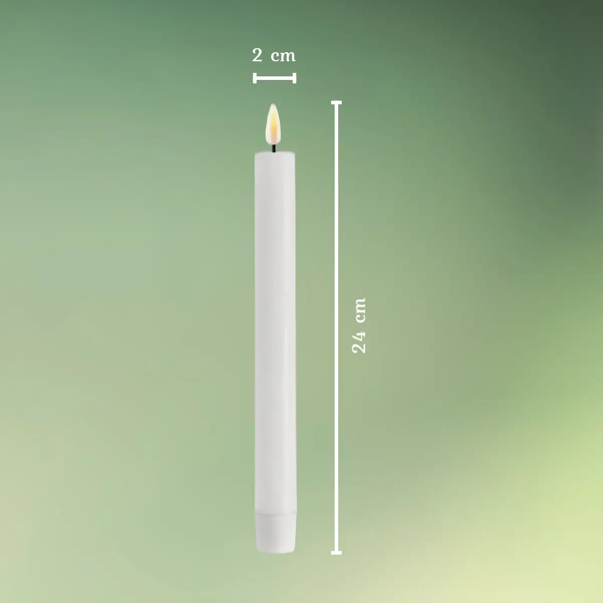 - Lyset måler 24 x 2 cm og har 300 brændetimer.