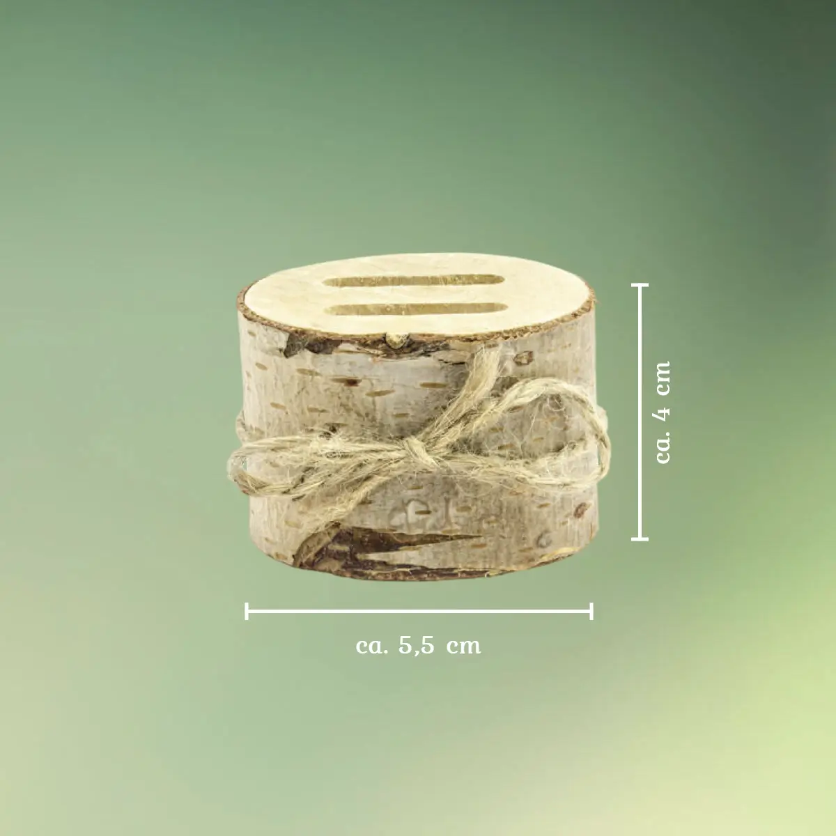 - Træ ringholderen måler ca. H: 4 Ø: 5,5-6 cm..