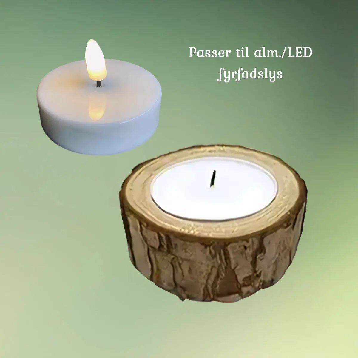 Rustik og naturlig fyrfadsstage i træ | Lysestage til almindelige / LED fyrfadslys