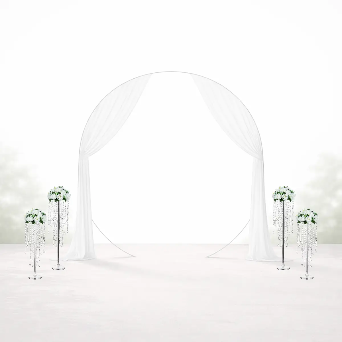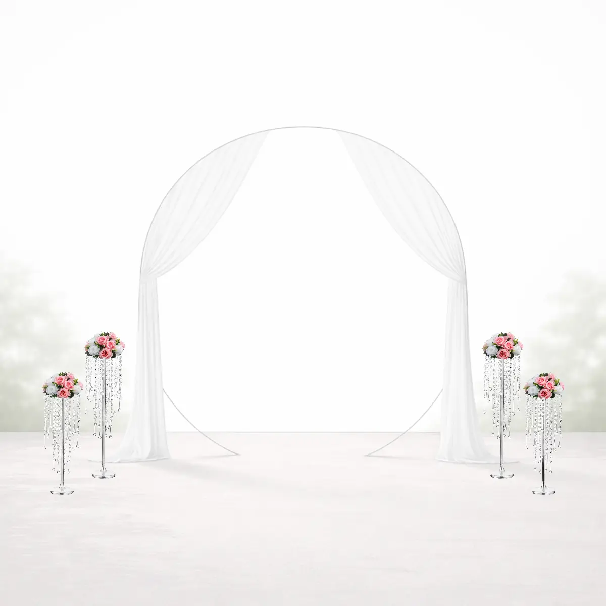 - Lej side-stativer med krystaller til vielsesbue og backdrop.