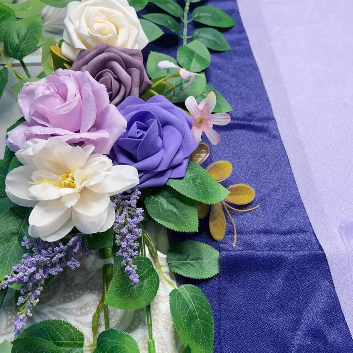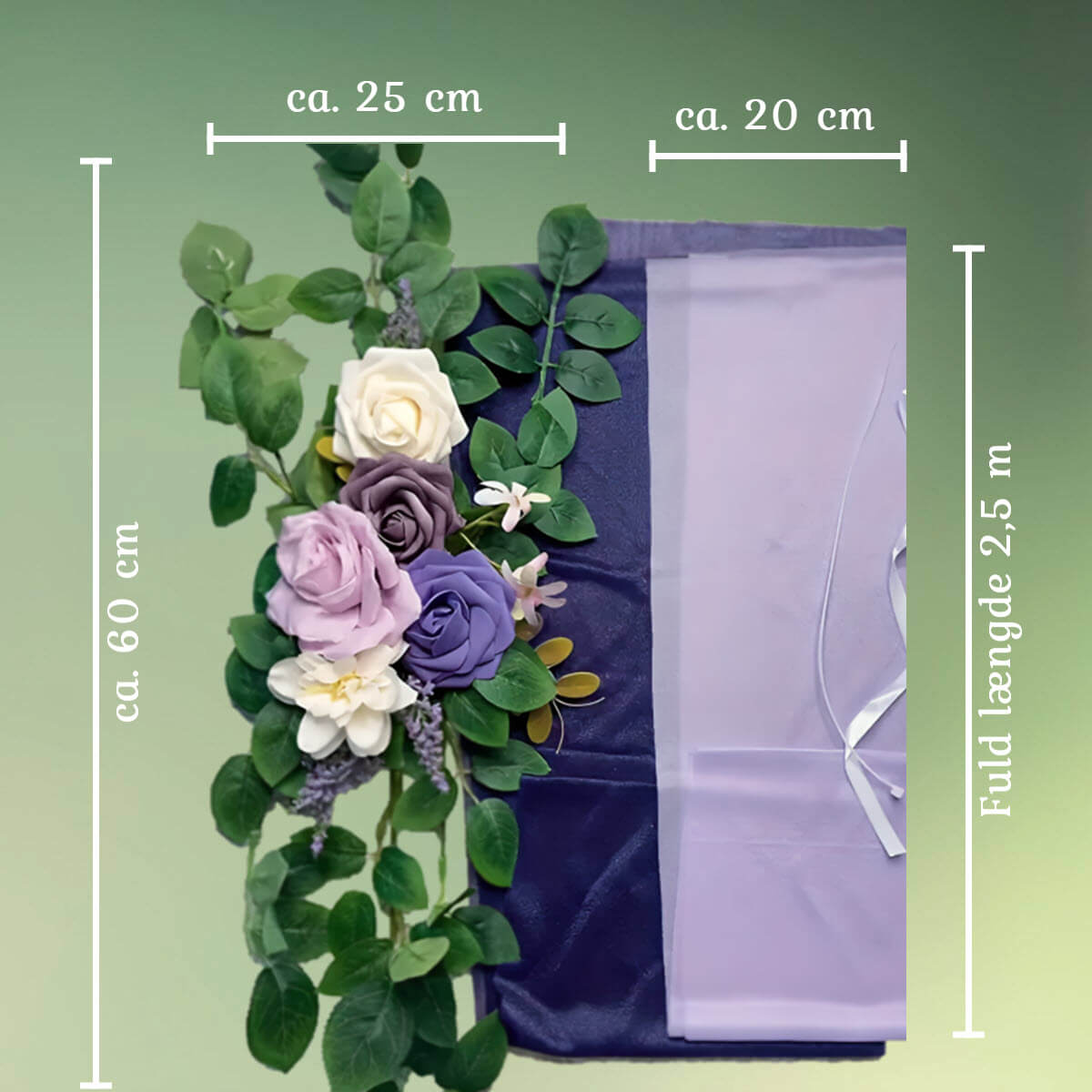 - Et sæt består af en kunstig blomster dekoration og to nuancer stof.